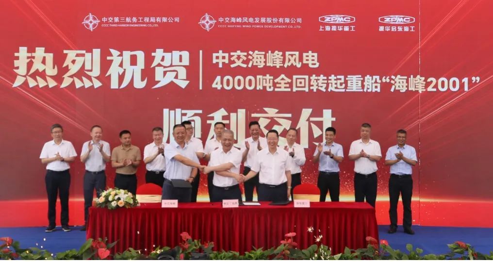 7月25日,由中交海峰風電投資、振華重工建造的“施工+運輸”一體化4000噸全回轉(zhuǎn)起重船“海峰2001”項目交船儀式在振華啟東海工隆重舉行,我國海上風電領(lǐng)域再添利器。江蘇啟東副市長黃晨,中交集團供應(yīng)鏈管理部總經(jīng)理助理黃毅,中交三航局黨委副書記、總經(jīng)理龔海,中交海峰風電黨委書記、董事長季振祥,振華重工黨委副書記、總裁歐輝生出席儀式。